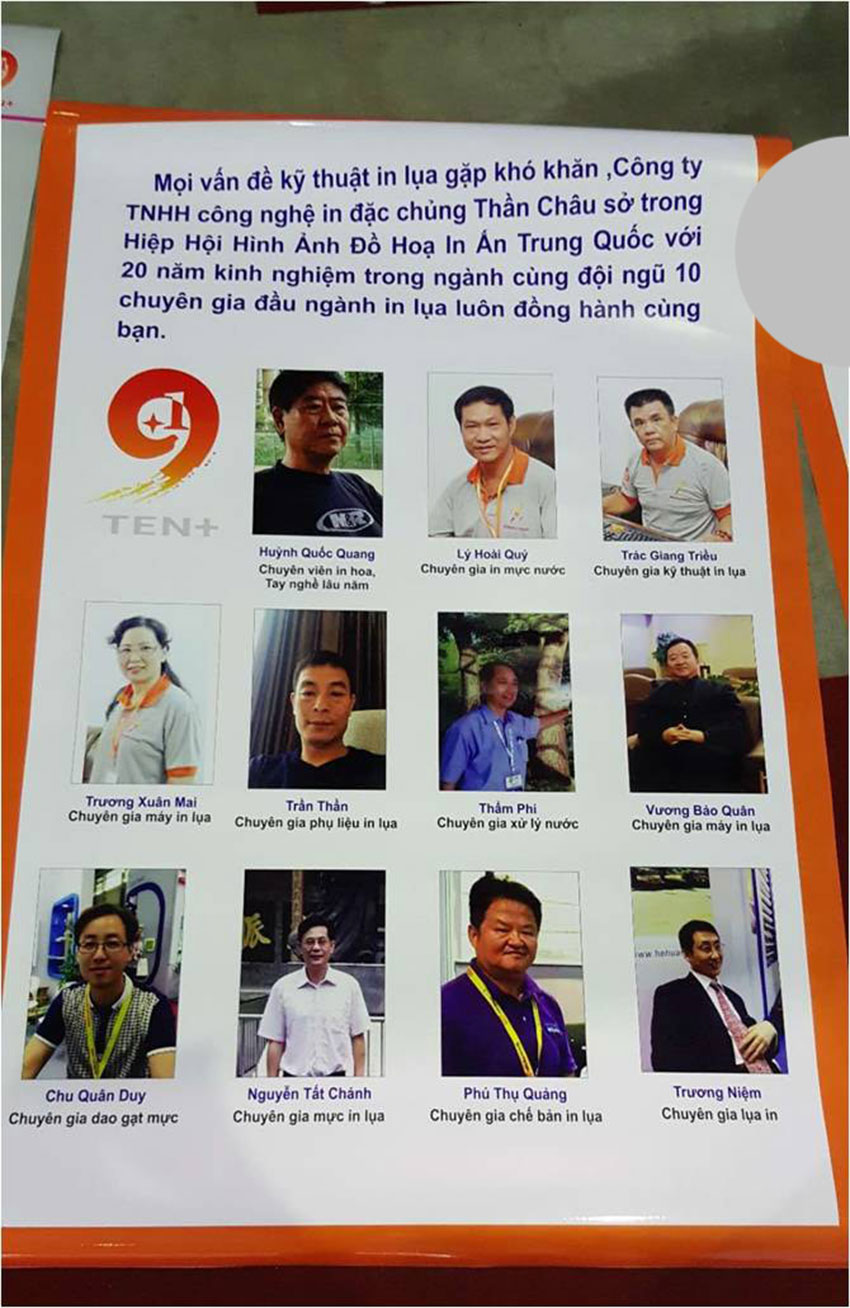 1.越南9+1是由中國境內(nèi)經(jīng)驗豐富的印花專業(yè)配套生產(chǎn)商組建的完整產(chǎn)業(yè)鏈團(tuán)隊,從網(wǎng)框網(wǎng)紗到機(jī)械設(shè)備印刷工藝提供全方位服務(wù),企業(yè)主個人從業(yè)經(jīng)歷15年—40年不等,現(xiàn)有胡志明工作人員7名,河內(nèi)工作人員6名,隨時為新老客戶提供技術(shù)建議技術(shù)支持等服務(wù)。