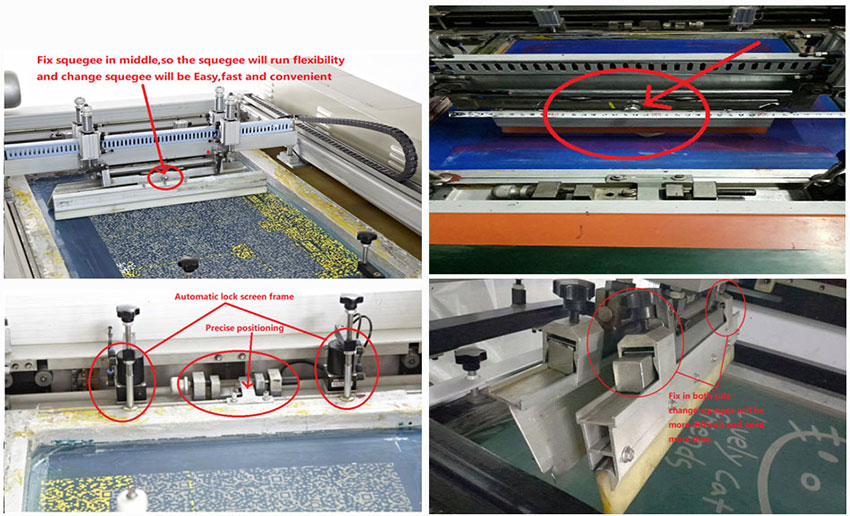 2、完美的印花刮印座一體化設(shè)計,上下裝缷網(wǎng)版快速、簡便,更換不同花版、花版檢查對版可直接快速目視調(diào)整;加漿料方便,無障礙,不損花版,獨特的網(wǎng)板對位系統(tǒng),上、下、左、右定位。網(wǎng)板快速定點裝卸操作方便。